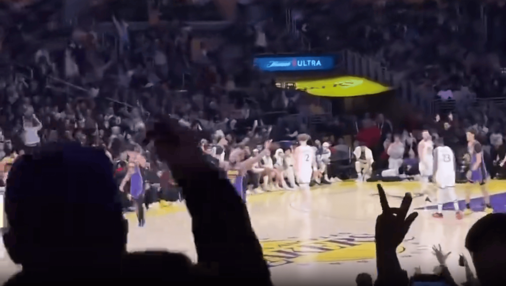 射中第三记三分后,周围不雅众席的球迷一皆欢欣。